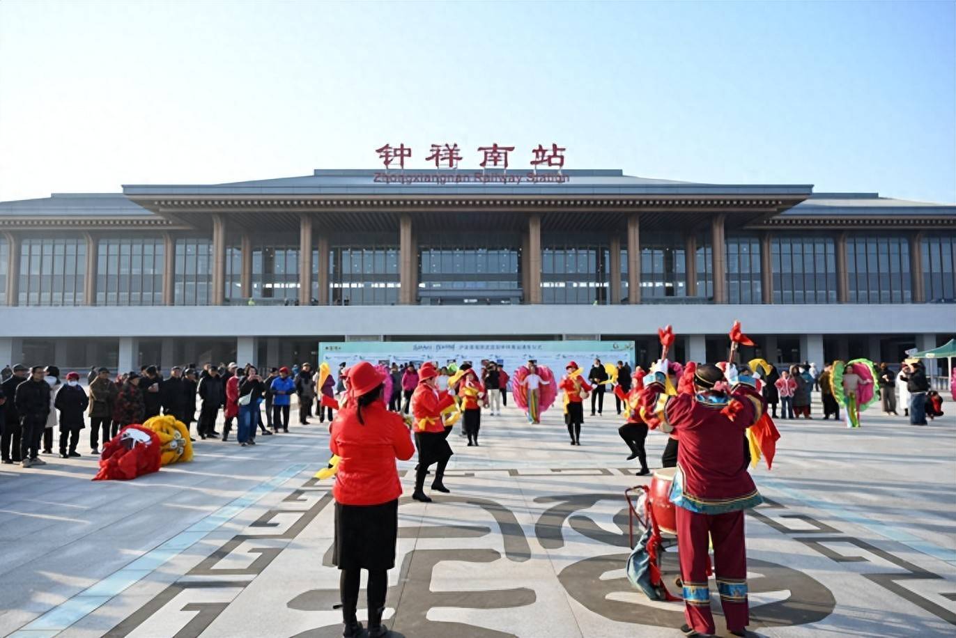 上午,钟祥南站站前广场人潮涌动,洋溢着喜庆与期盼。伴随着《莫愁谣》的悠扬旋律,通车仪式正式启动。在“全民剪彩·共启新程”环节,一条十米红绸由铁路集团代表、高铁建设者、企业家及领导嘉宾共同剪开,象征着钟祥期盼已久的高铁时代正式启航。活动现场,《钟祥之恋》《我在钟祥等你来》等富有地方特色的歌舞节目,展现了钟祥灵秀的山水与深厚的文化底蕴。