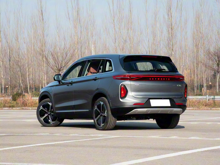 再来看车尾部分,车尾设计延续了前脸的未来感风格,贯穿式尾灯组与车头灯带形成完美呼应,夜间辨识度极高。隐藏式门把手不仅提升了整体美感,更优化了空气动力学性能。后备厢开口经过精心设计,既保证了足够的装载空间,又确保了日常使用的便利性。车尾的"EV6"标识采用特殊工艺处理,在不同光线条件下呈现出微妙的光影变化,彰显了创维对细节的执着追求。
